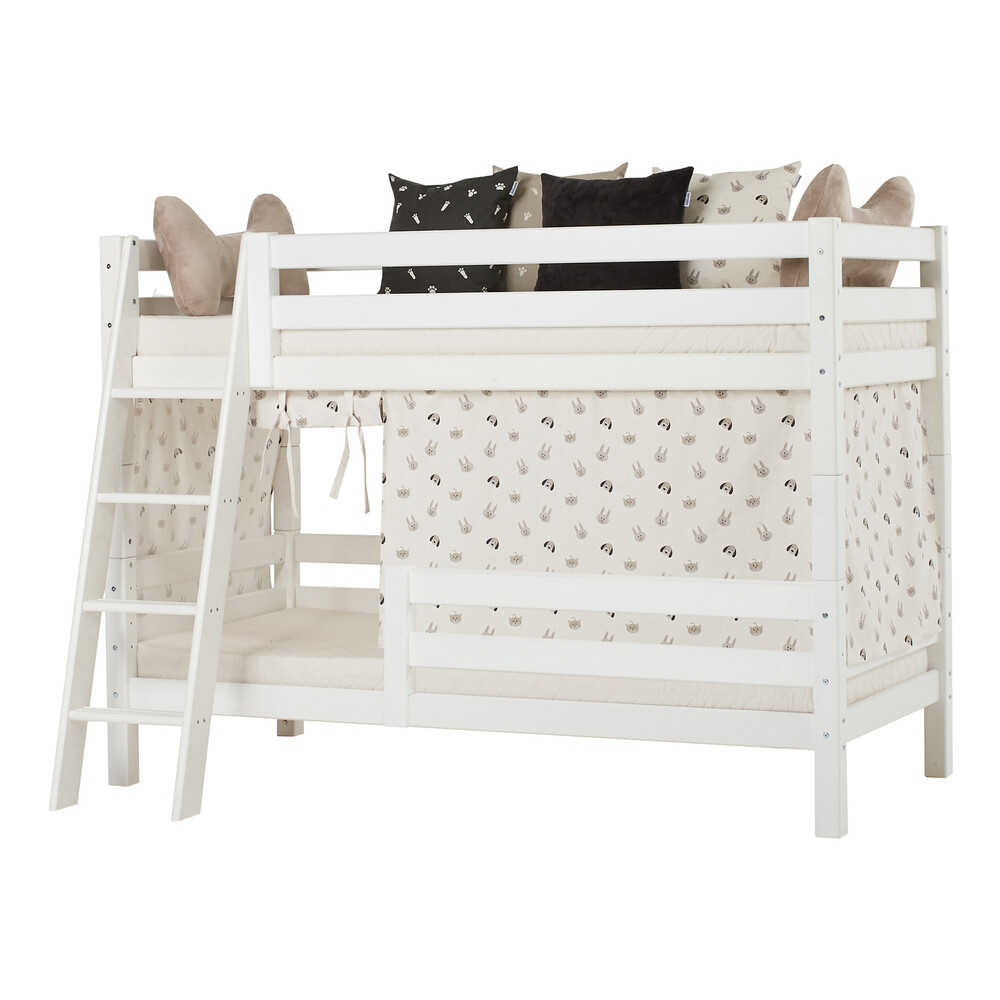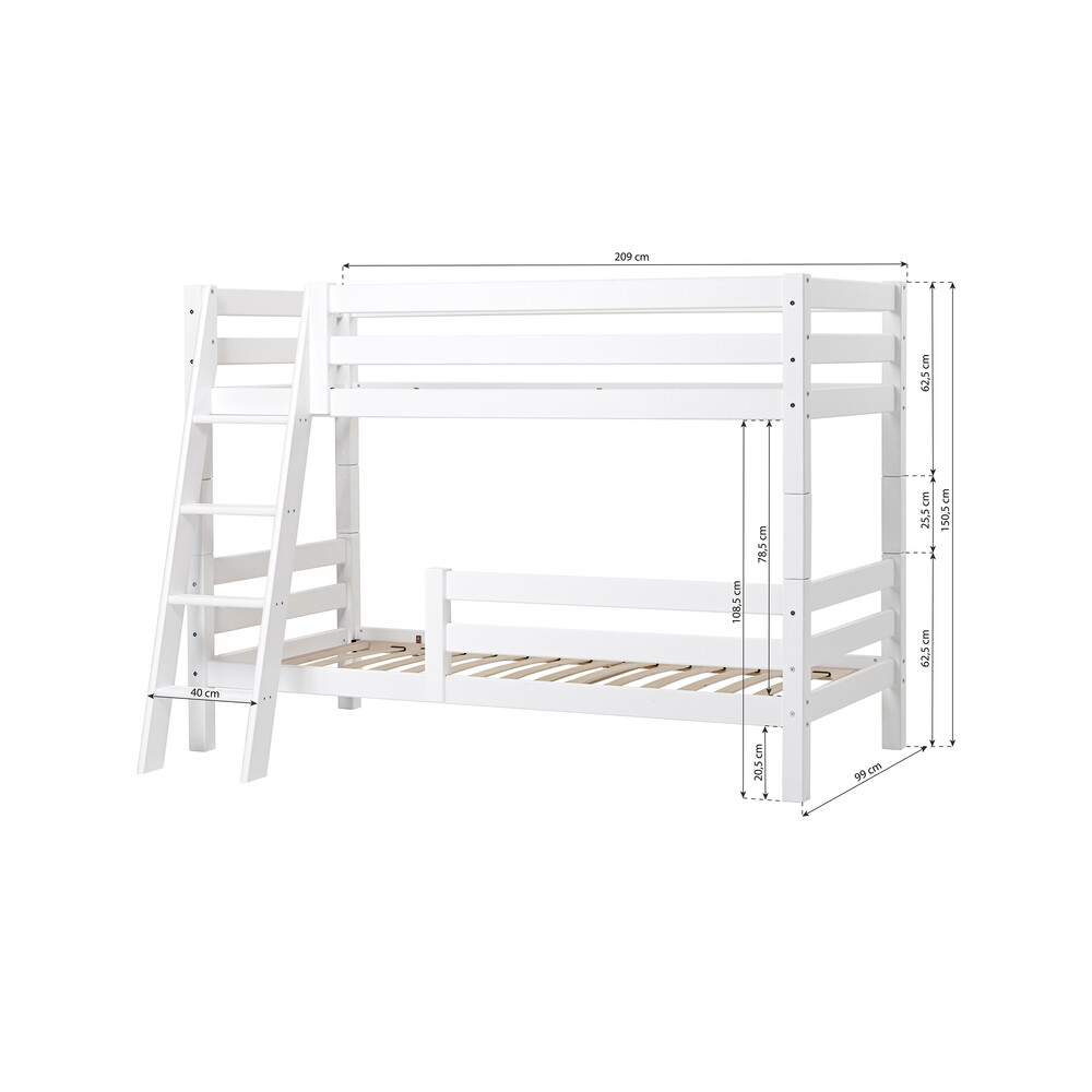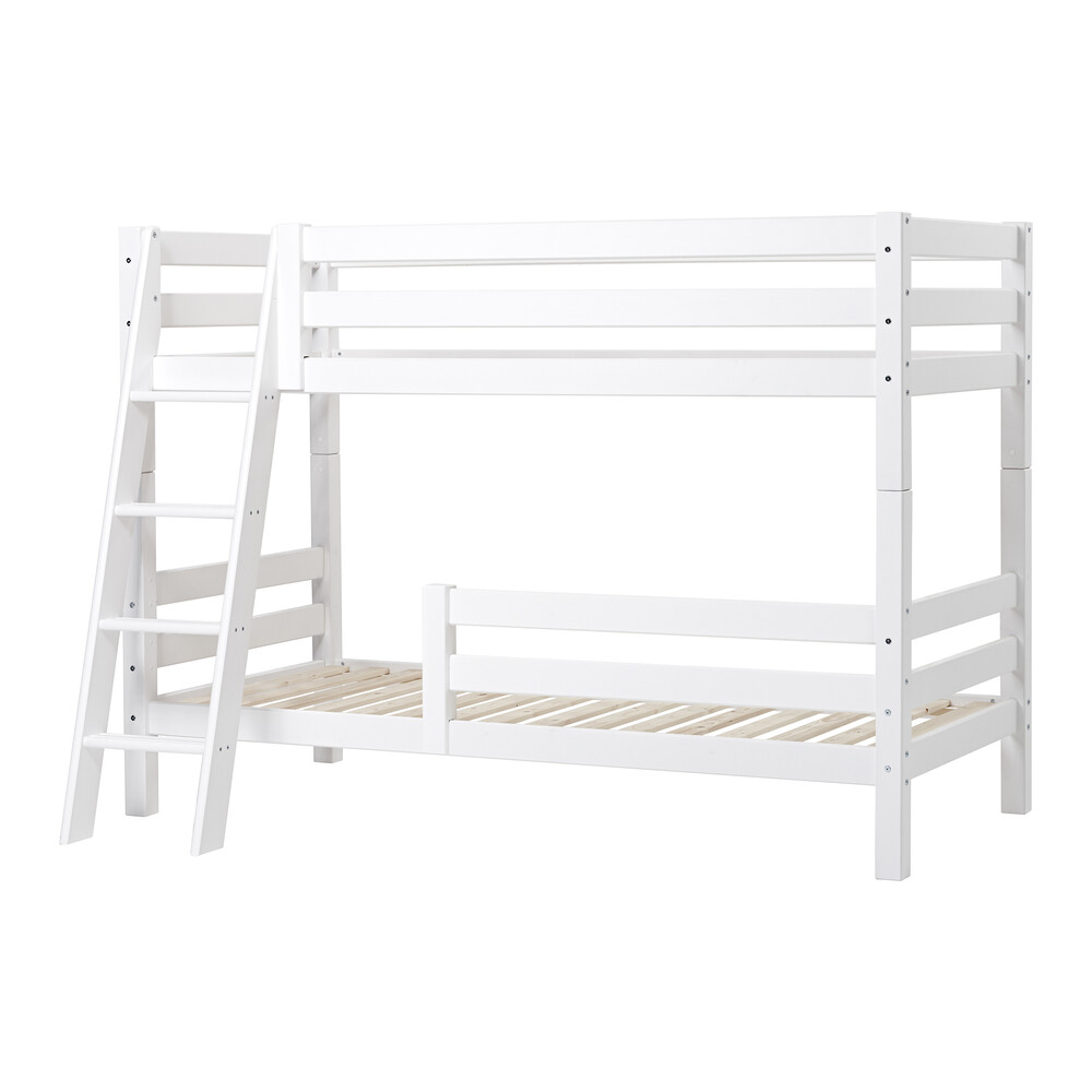Hoppekids ECO Luxury Bunk bed 90×200 cm with two bed rails and slanted ladder, Flexible slat frame, White
