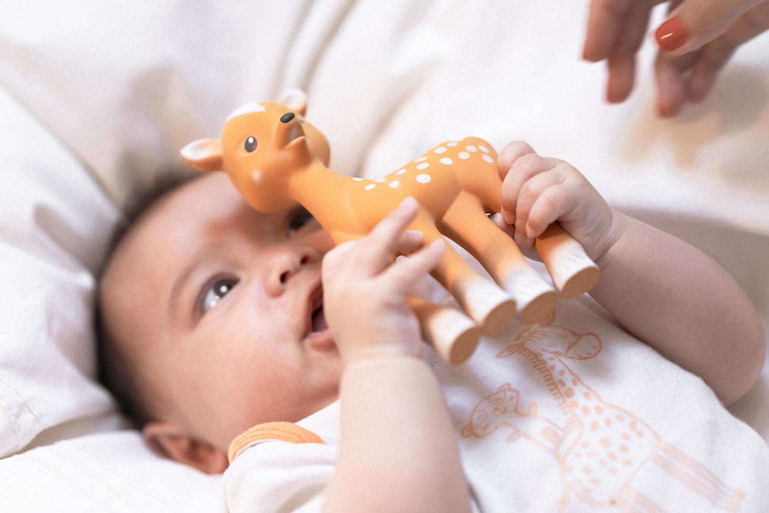 Fanfan the Fawn purulelu stimuloi kaikkia aisteja. Se on valmistettu 100% luonnonkumista ja siitä tulee nopeasti vauvasi lemppari kumppani.