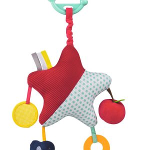 Tähti, jossa on yli kuusi aktiviteettia vauvasi aistien stimuloimiseksi. He löytävät lelusta uusia värejä, rätisevän paperin äänen, peilin, kellon, erilaisia tekstuureja…