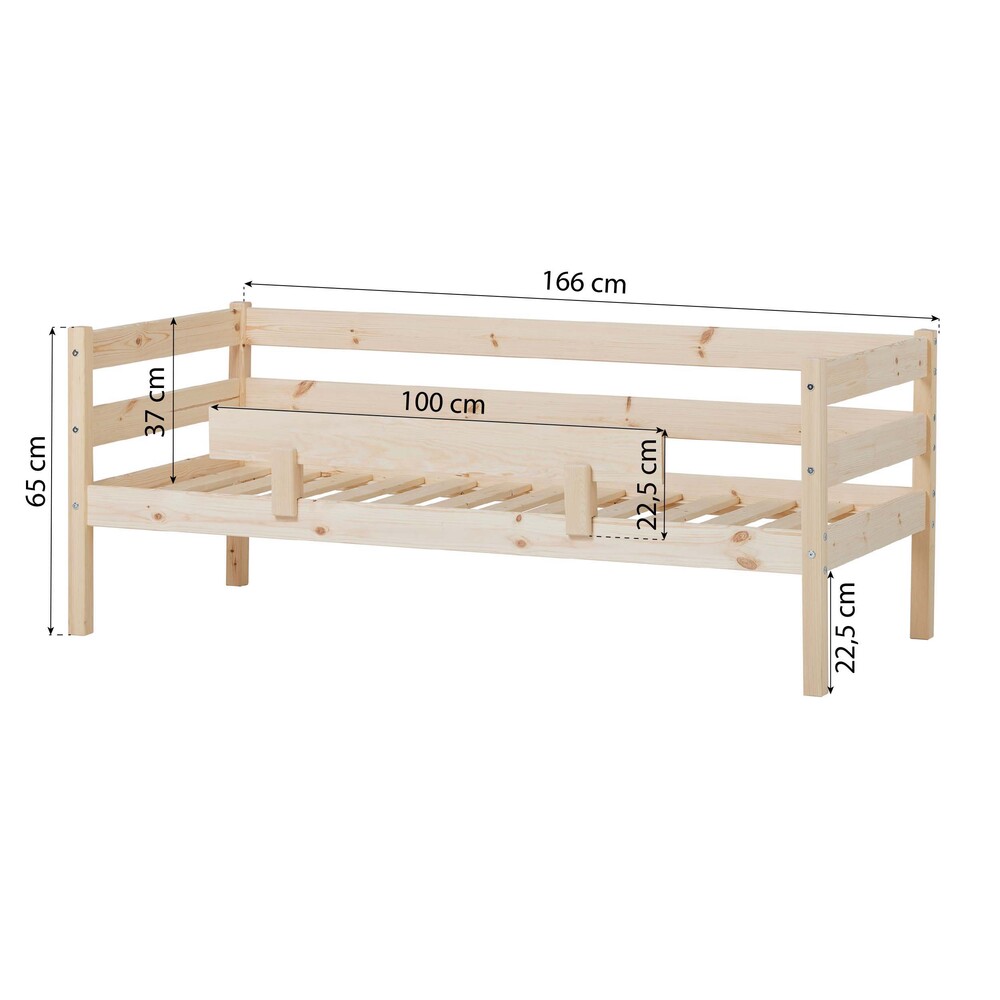 This smart safety rail for the ECO Comfort junior bed from Hoppekids makes the transformation from safe resting place to a fun day bed easy and swift. The safety rail matches the ECO Comfort junior bed in Natural Wood and gives a pure and raw look to the kids’ room.