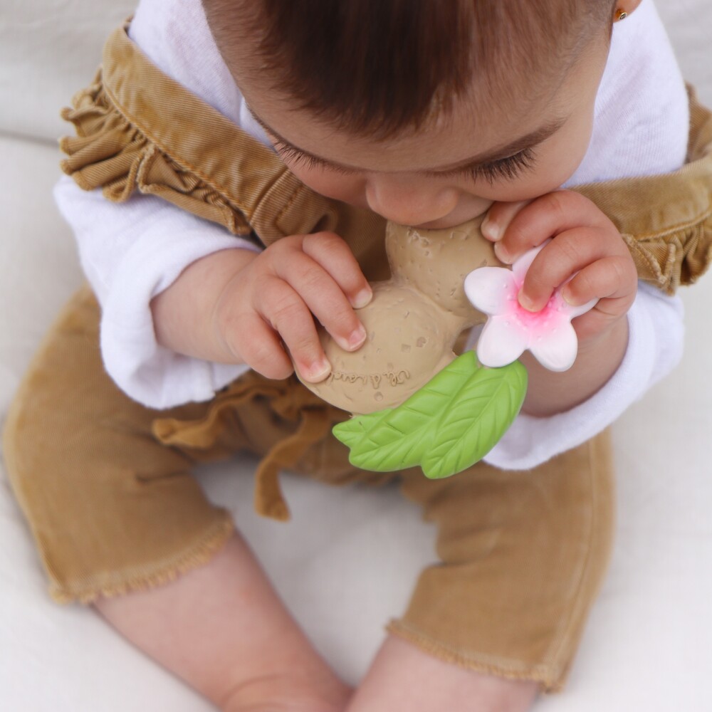 Oli&Carol vauvojen purulelu auttaa vauvan suun luonnollista kehitystä ja stimuloi samalla heidän aistejaan. Jokainen purulelu valmistetaan käsityönä yksitellen luonnonkumista ja maalataan käsin kasvien luonnollisilla pigmenteillä.