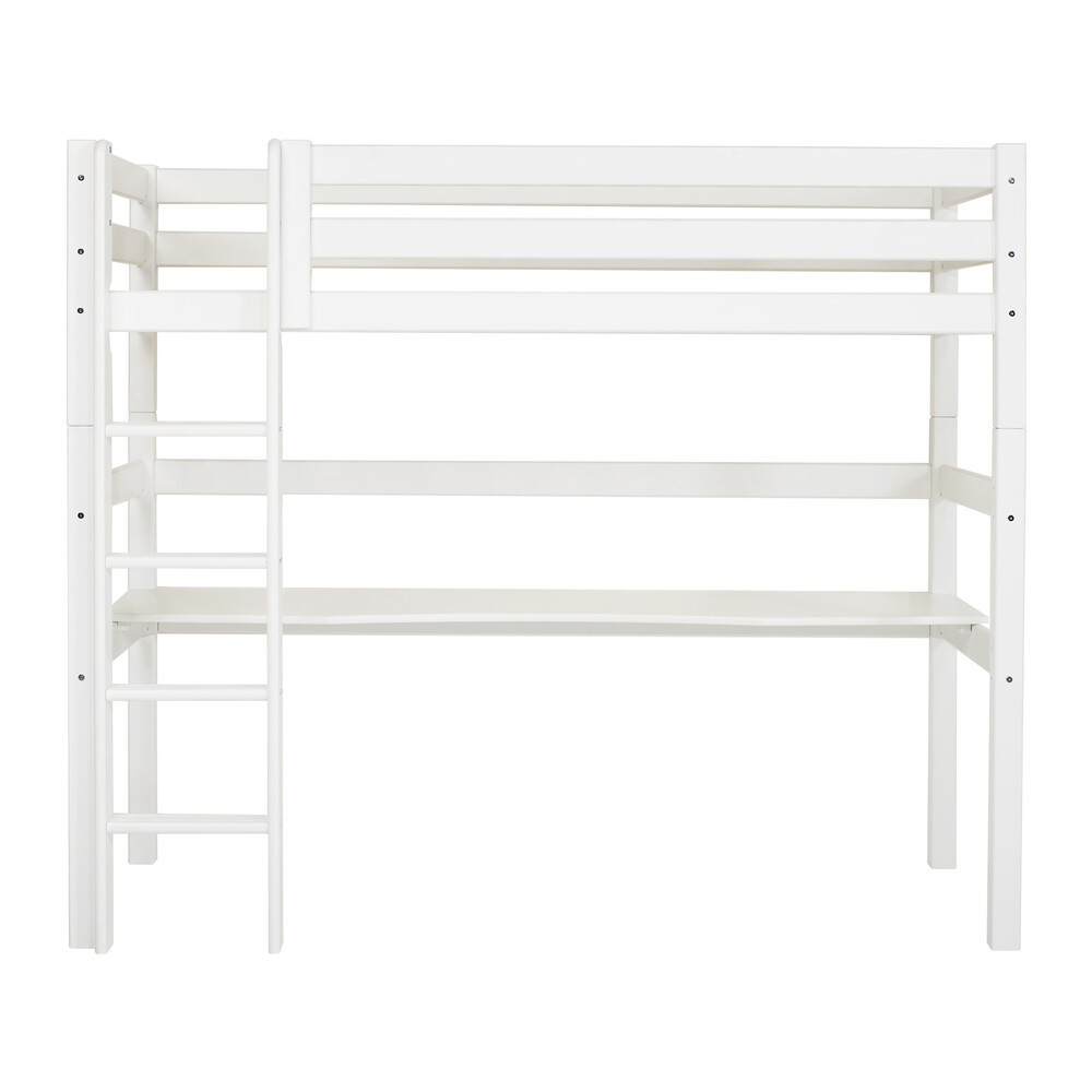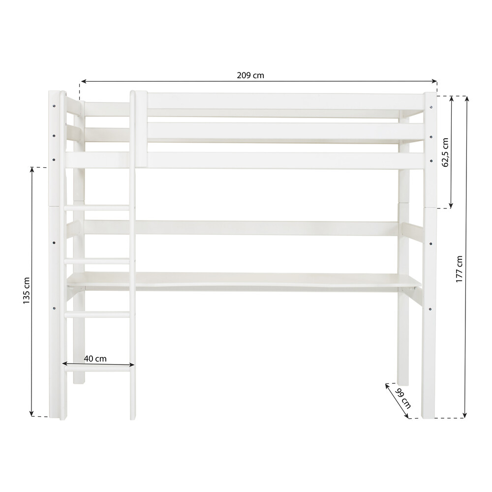 Käytännöllinen ECO Luxury Korkea parvisänky koossa 90×200 cm sisältäen pöydän. Pöytä ja sängyn alle jäävä 135 cm:n tilava tila mahdollistaa hauskan ja toimivan työskentelytilan rakentamisen. Tämä sänky on Joutsenmerkki merkitty, katettu Hoppekidsin elinikäisellä takuulla ja tuotteen pinta on käsitelty vesipohjaisella, luontoystävällisellä lakalla joka ei sisällä haitallisia ainesosia tai turhia kemikaaleja. Voidaan pestä kuivaksi puristetulla liinalla ja miedolla saippuavedellä.