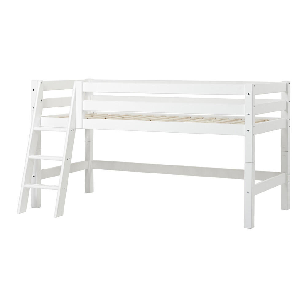 Käytännöllinen Hoppekids ECO Luxury puolikorkea sänky vapauttaa lattiatilaa ja kaltevat portaat tekevät sänkyyn kiipeämisestä turvallista ja helppoa. Tämä sänky on Joutsenmerkki merkitty, katettu Hoppekidsin elinikäisellä takuulla ja tuotteen pinta on käsitelty vesipohjaisella, luontoystävällisellä lakalla joka ei sisällä haitallisia ainesosia tai turhia kemikaaleja. Voidaan pestä kuivaksi puristetulla liinalla ja miedolla saippuavedellä.