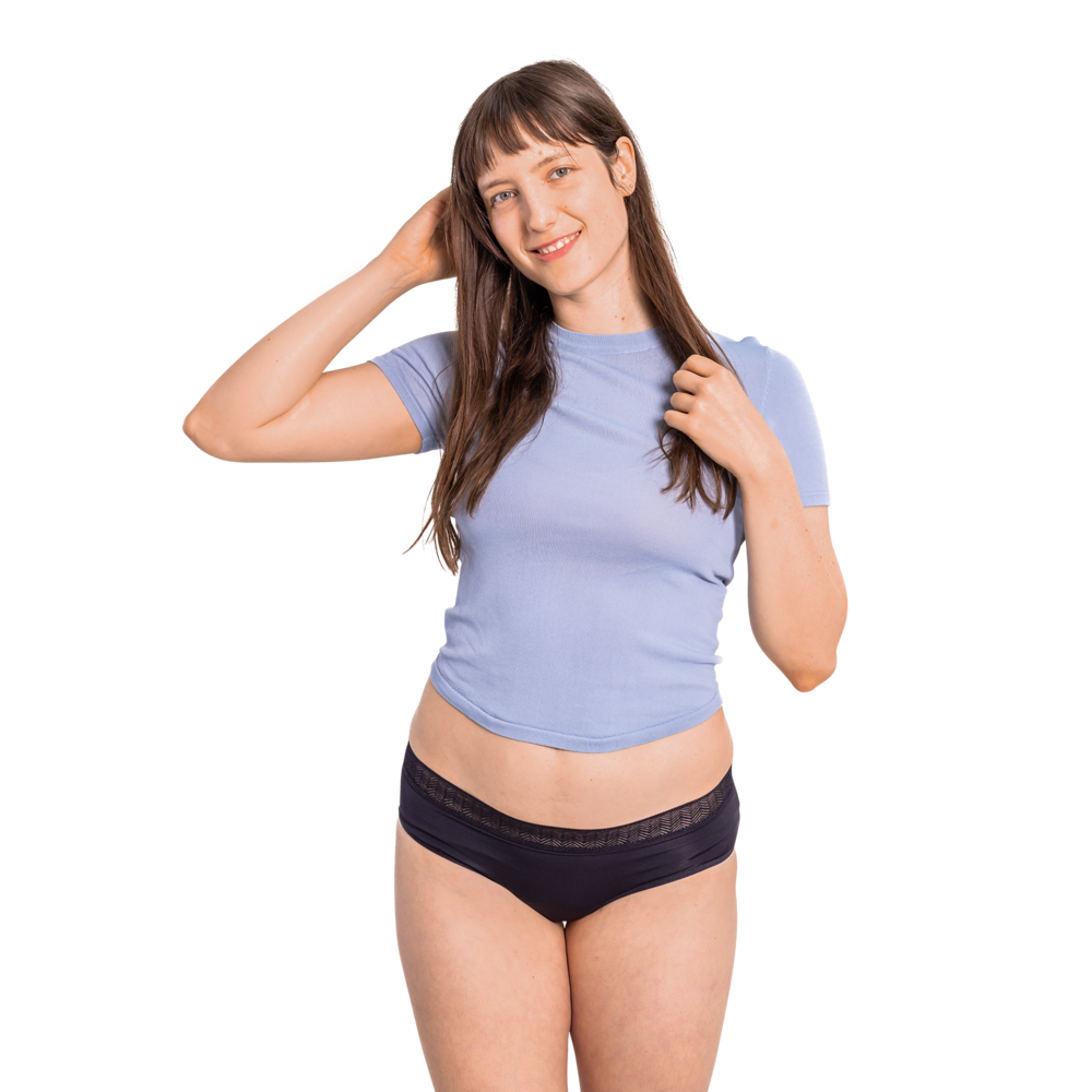 Selenacare Hipster kuukautisalushousut ovat valmistettu mahdollisimman mukaviksi ja istuviksi, mutta myös tyylikkäiksi. Kuten kaikissa malleissamme, imupinta on sisäänommeltu housuihin huomaamattomaksi. Nämä kuukautisalushousut imevät jopa 25 ml nestettä.