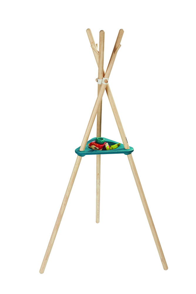Tässä naulakossa lasten omat vaatteet roikkuvat nätisti. Keskellä olevaan kippoon saa säilöön vaikka aurinkolasit ja pikkuaarteet. Naulakko muuntuu tarvittaessa myös majaksi aseta viltti (ei sis. pakkaukseen) naulakon päälle ja sinulla on valmis tiipii leikkejä varten!