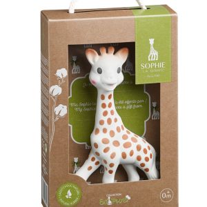 Ikoninen, hauska ja aisteja stimuloiva Sophie La Girafe purulelu on valmistettu 100% luonnonkumista ja pakattu kierrätysmateriaaleista valmistettuun lahjapakkaukseen.